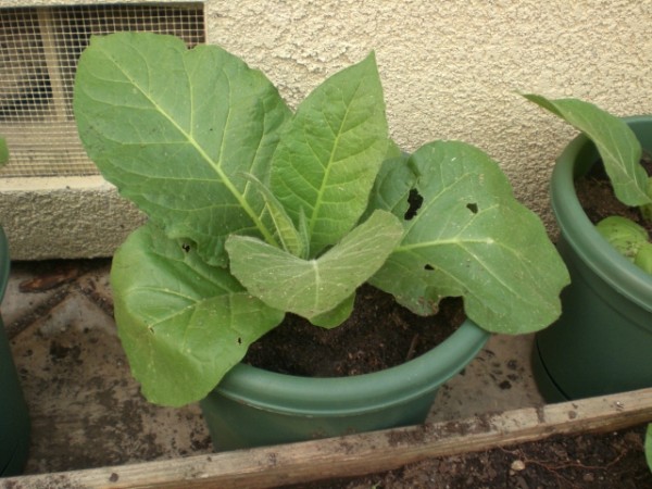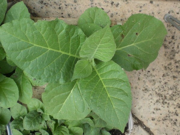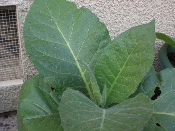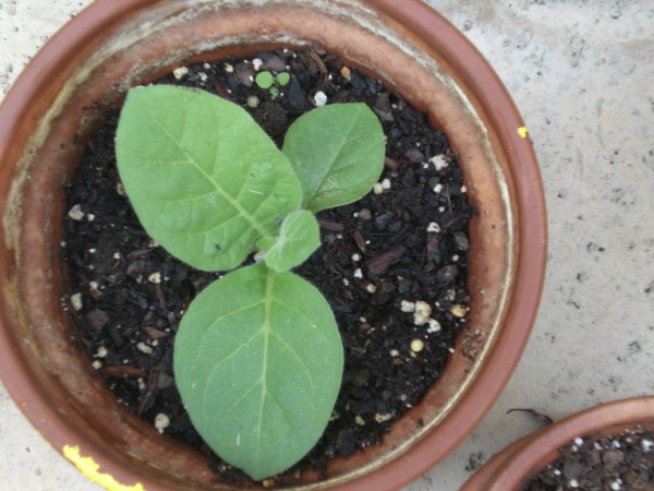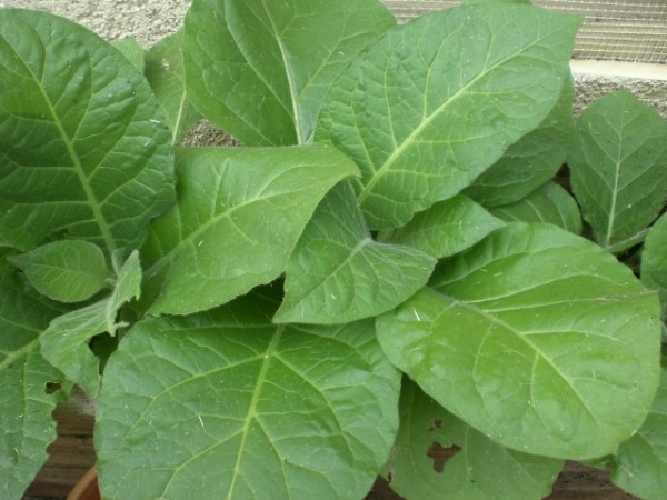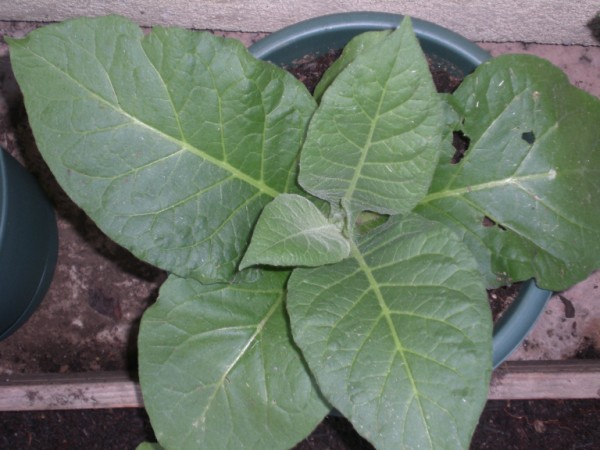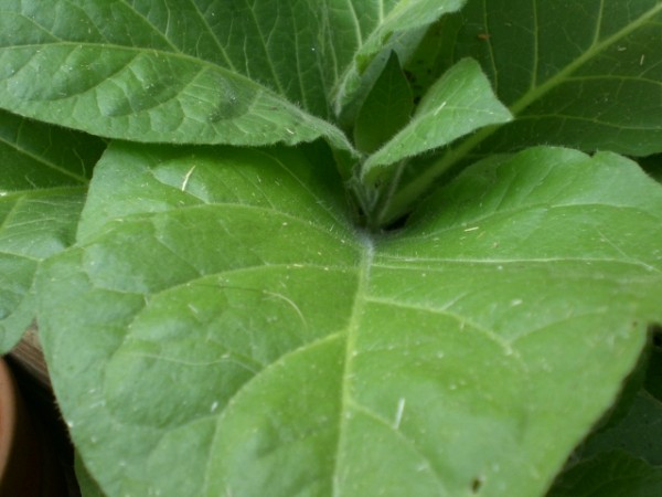 | Thanks to Tzaddi (Richard) on ClubStogie.com I had tobacco seeds to grow. After watching some of the crops he had grown I thought it might be fun to give it a try myself. The interesting thing about growing tobacco for cigars is not just the growing but the harvest and curing process. You don't pick all the leaves all at once but a few leaves at a time. Also, the curing process is an art in and of itself. Thanks to people like Richard, this should be a fun and educational experience. With any luck I'll be able to roll this leaf into some cigars I can attempt to smoke.